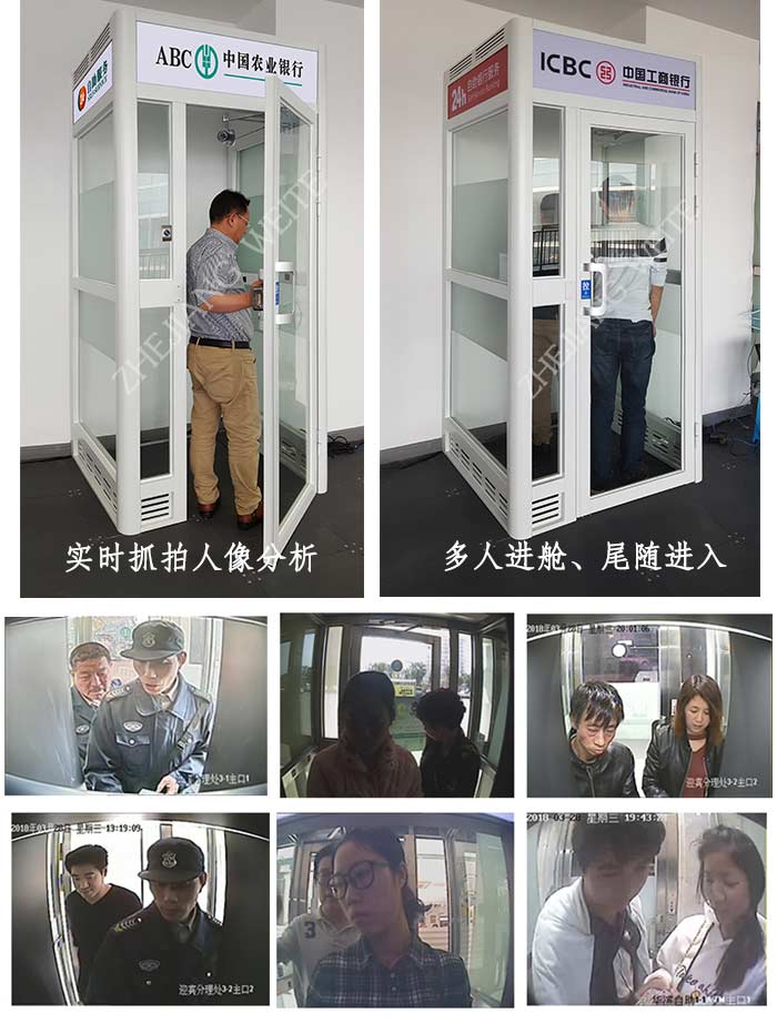 一、尾随进入(多人进舱)远程后台监控中心预警:当有尾随人员进舱时,将进行多人进舱报警,上报自动抓拍人员进舱照片,并弹出视频监控(调用顶部摄像头,观察防护舱现场活动)