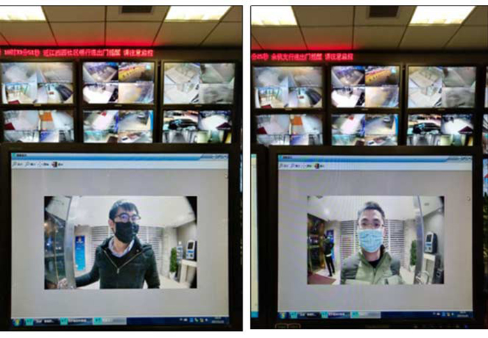 当人员进舱时脸部被遮挡时,将进行异常人脸报警,并上报自动抓拍人员进舱照片,调用顶部摄像头实时监控防护舱现场情况。